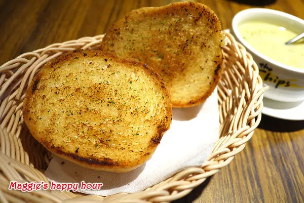 看過別人的文章說可沾濃湯一起吃,但我試過之後發現分開吃比較讚,因為大蒜麵包本身已經很夠味了,如果是一些本身沒添加味道的麵包沾湯一起吃才比較對味。