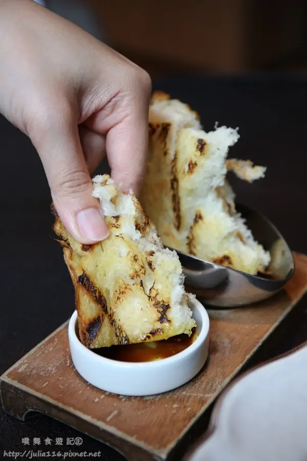 單吃很棒,沾一點點紅酒醋更顯開胃,這份餐前麵包水準不凡(想再來一份)
