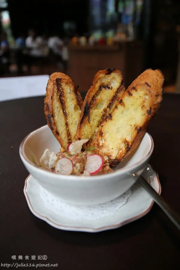 吃完前菜,服務人員特別幫我換上加熱過的小盤,為的是稍後上主餐時分盤,食物不至太快冷卻