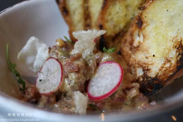 義式吃法通常會加上洋蔥末、酸黃瓜、西洋香菜末、橄欖油...等等,最後打上一顆生雞蛋
