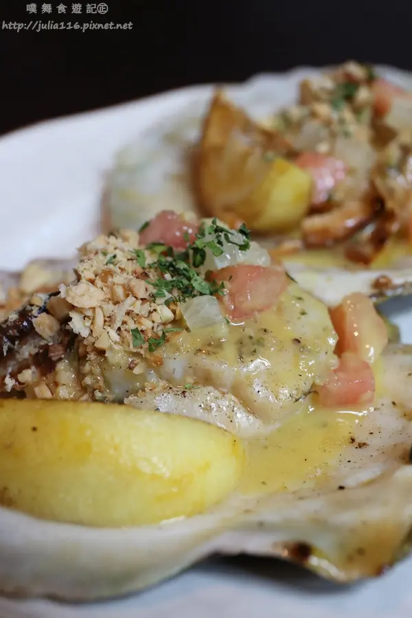 讓我印象深刻的還有蛤蠣奶油醬與堅果碎,奶油醬不僅沒有搶去扇貝的鮮美,反而襯托出其鮮甜