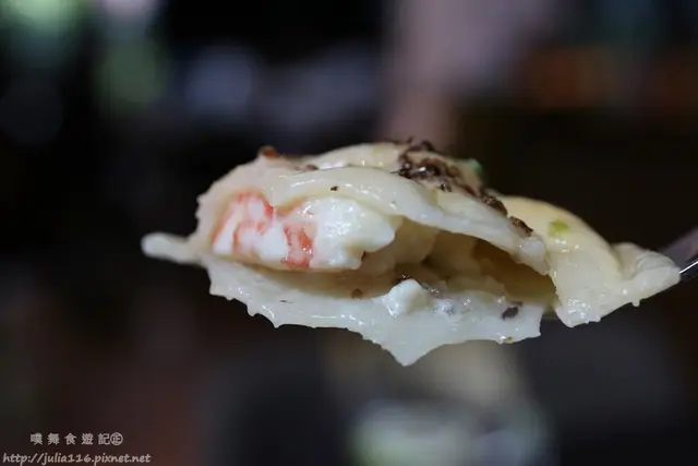每一顆餃子都能嚐到完整甜蝦,服務人員特別告知當日甜蝦是來自東港,是有沒有這麼幸福啊