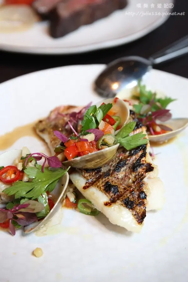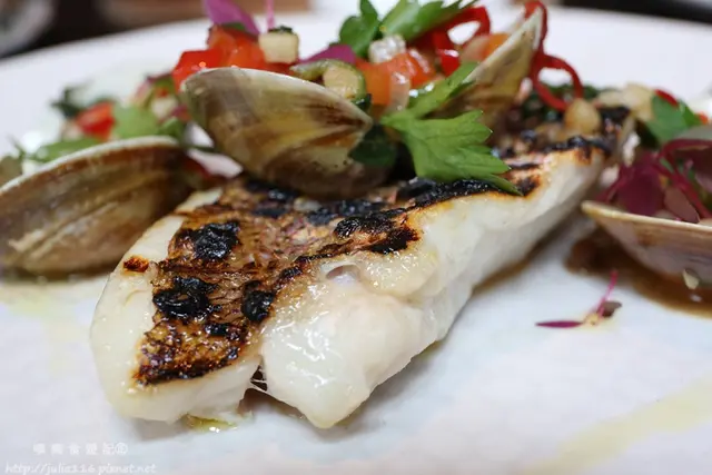 Josper爐烤市場鮮魚佐辣炒白葡萄酒初汁鮮蛤(時價)