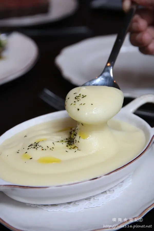 我回來查了菜單上的法文Velouté,是英文Velvety,中文是天鵝絨般柔軟光滑的意思^^