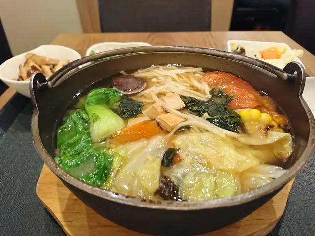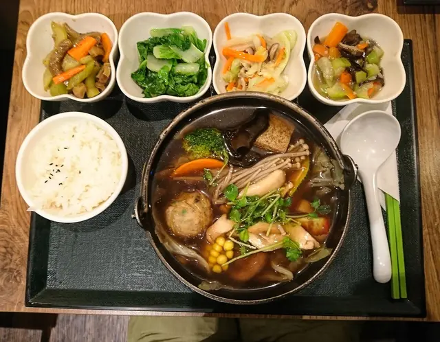每樣小菜都不同的味道,有些是麻油炒得,有些有放薑絲,有些和著木耳,丸子是自己做的,有蔬菜的清香。藥膳湯是充滿根莖蔬果的,你會吃到南瓜的甜、金針菇的滑順、玉米的飽滿、高麗菜的水份,滿滿的豐富料理。