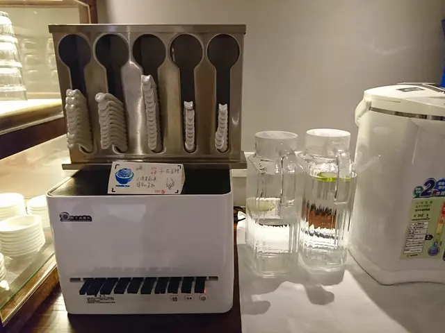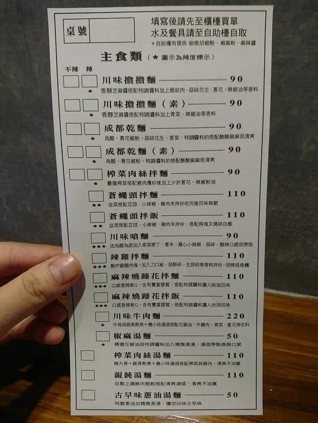 店內環境乾淨整潔,餐具是高溫消毒的,店內有免費的水、辣醬可以選用。不須服務費。