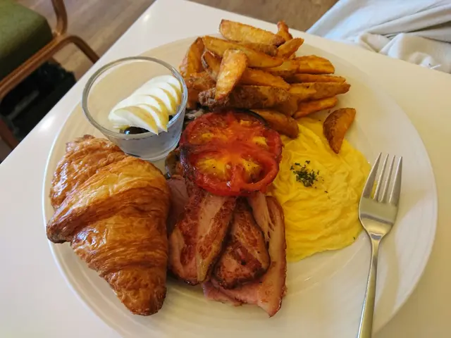 「旅人早午餐」可以選可頌、貝果、土司等主食,真心推薦可頌,香酥好吃沒有油味。培根跟炒蛋都是很基本款,不易出錯的搭配。