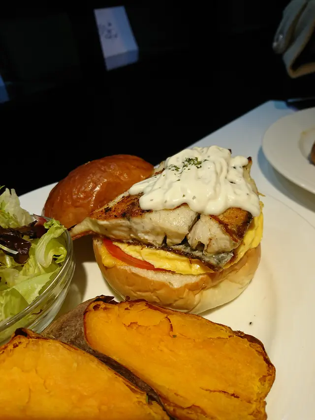 海鱺魚超級嫩,味道鮮美沒有土味。再者,漢堡的麵包是用奶油烤過的,油但很香。優格醬篇奶油一點,一開始很不錯,但尾韻稍有點膩。整體來說可以試試看。