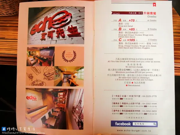 艾可先生漢堡餐廳目前在台中有三間分店,分別為一中店、逢甲店及勤美店