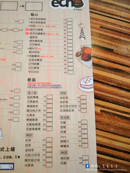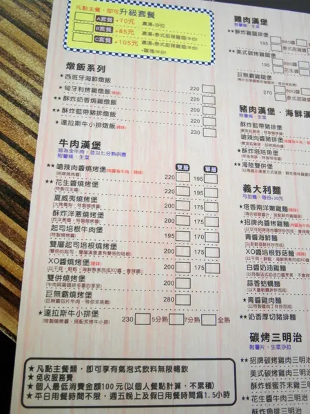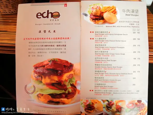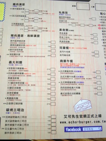 艾可先生除了主打美式漢堡外,還有義大利麵、燉飯、碳烤三明治、排餐、炸物及飲品