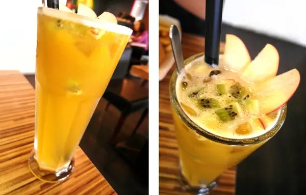 喝起來酸酸甜甜的,有解膩的效果,還吃的新鮮的奇異果及蘋果粒