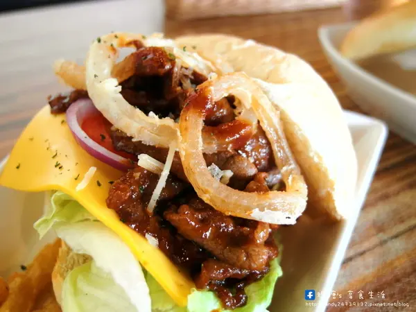 香氣濃郁不過鹹,搭配新鮮生菜、洋蔥、起司及炸過的洋蔥,配料豐富,口感十足