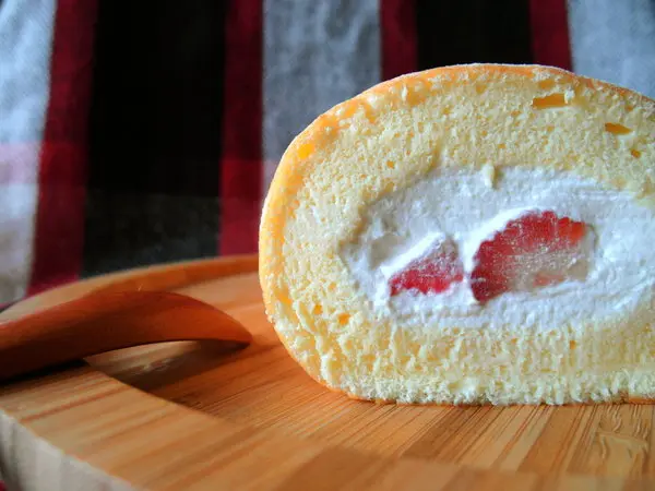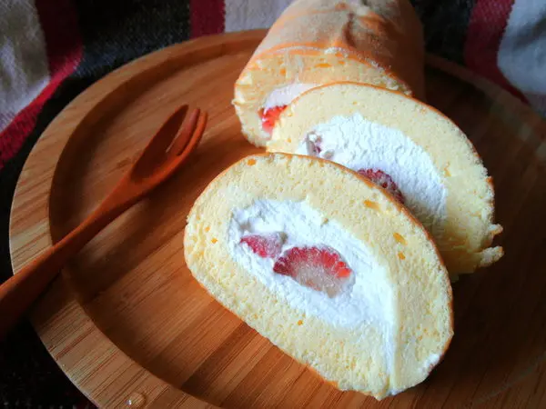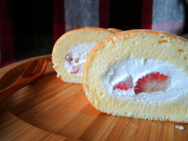 草莓鮮乳捲 550元 蓬鬆粉嫩的戚風蛋糕交織著潔白無暇的鮮奶油,加上鮮紅亮麗的新鮮草莓這麼誘人的畫面加上迷人的香氣,讓人還沒嚐一口,就深深的為他著迷押