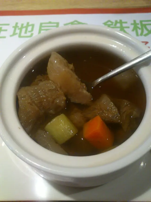 我點的牛腩清湯及朋友的牛蒡雞湯,牛腩半筋半肉是我愛的也很軟嫩,湯的味道也很濃郁