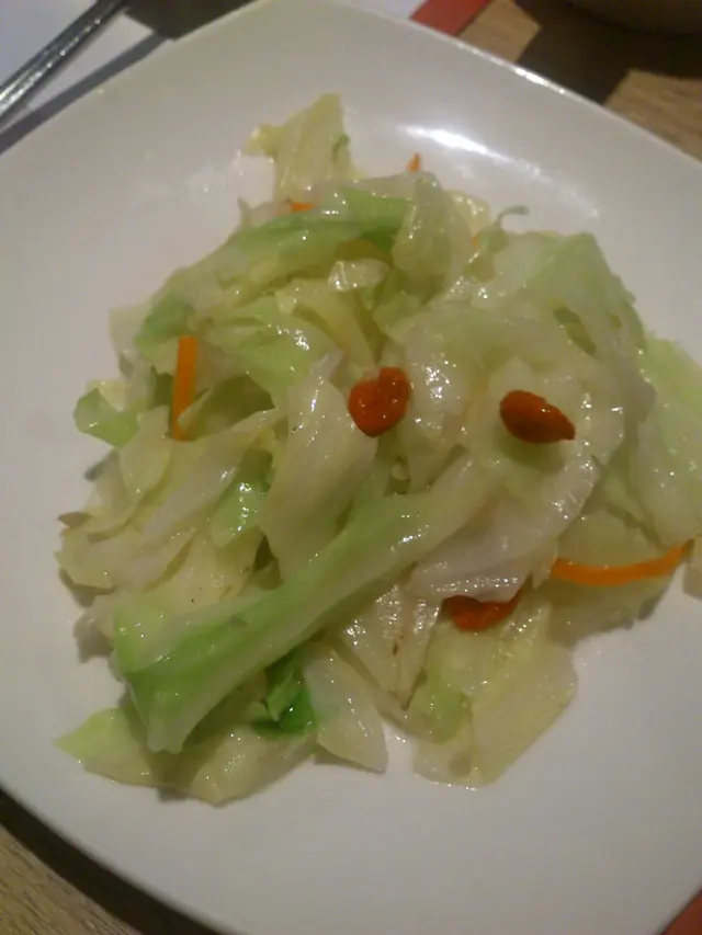 同時上場的是炒高麗菜,很明顯看到有加枸杞,滋味還不錯
