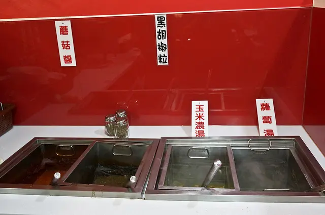 醬汁是黑胡椒與蘑菇, 很傳統的作法, 湯則有最常見的玉米濃湯和蘿蔔湯