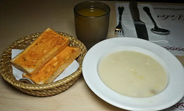 友人很勇敢的拿了麵包與湯(他等下要吃22 Oz 的肉耶) , 我個人就只拿了玉米湯
