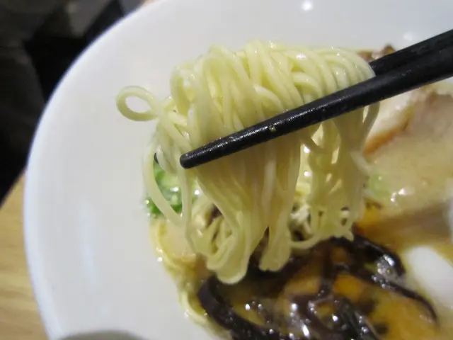 還有這顯而易見的豬背脂,看起來雖然一顆顆,但其實喝到嘴裡是化開的,湯頭味道比起白丸更濃郁、更重一些,但其實不太有辣度,我還是比較偏愛白丸單純一點的原味
