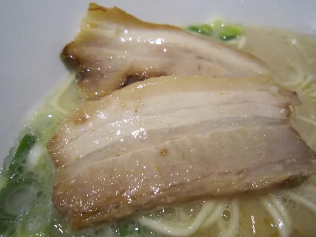 而招牌就是這用豬頭、豬骨熬煮20個小時的這味高湯,還另外加上了豬油,看起來雖然表層佈滿油點,喝起來卻一點也不油,而且入喉溫順,微鹹中又喝得出微微甜味