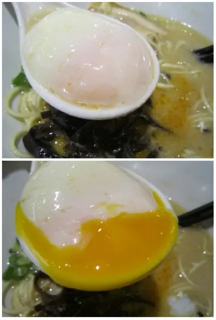 這是額外加點的溫泉玉子NT$30─拉麵中是沒有附蛋的喔~雖然一顆要價是滿貴的...而且本來要點的是糖心蛋,偏偏menu上寫的是半熟玉子,就在我急著點餐的同時把兩種蛋搞混了....所以