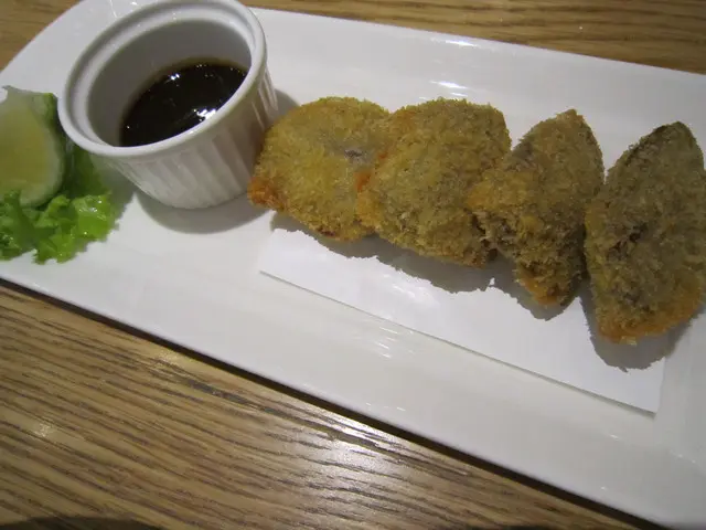 一般常吃的牛舌都切得非常薄,一風堂的炸牛舌這樣的厚度讓我有點驚訝!!外層的麵衣附著的非常好,咬開後也沒剝落,但牛舌卻有些乾,也嚐不太出香氣,反而是沾上旁邊的日式沾醬和檸檬汁比較好吃,所以我覺得有點浪費了牛舌的料理法