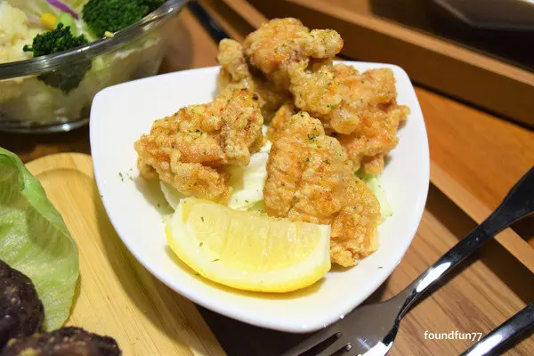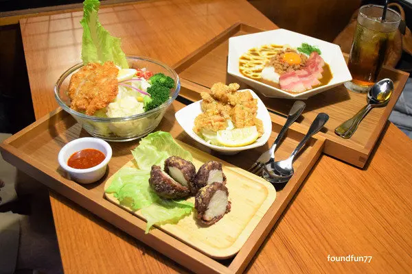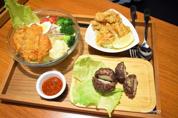 炸物有雞塊/魚排/雞排/厚煎培根可以選擇