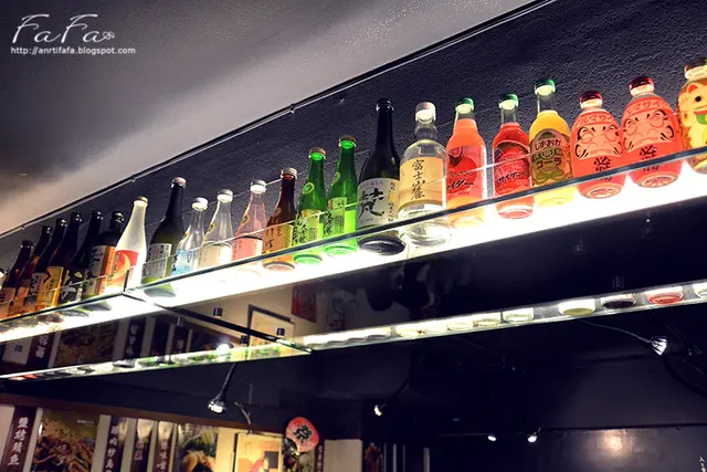 裝潢特點之一是兩排透明的酒柱,橫跨店內展示著各式各樣日本酒,五顏六色讓人不自覺往上瞄。