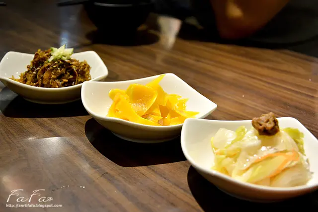 漬泡菜清脆酸度高,帶點甜味有分泌唾液效果,整個讓人很迫不急待地等餐點到來。