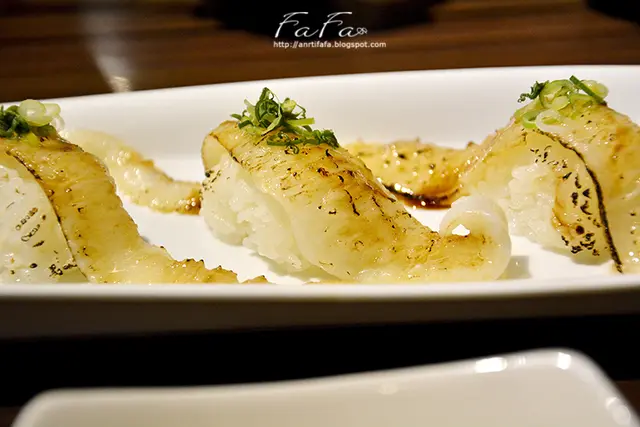 炙燒好的比目魚壽司端上來,要趕緊趁它組織化掉前吃,快速夾起之後那入口即化的比目魚,