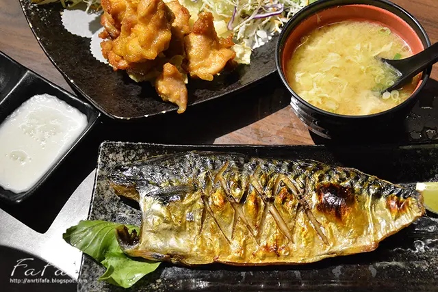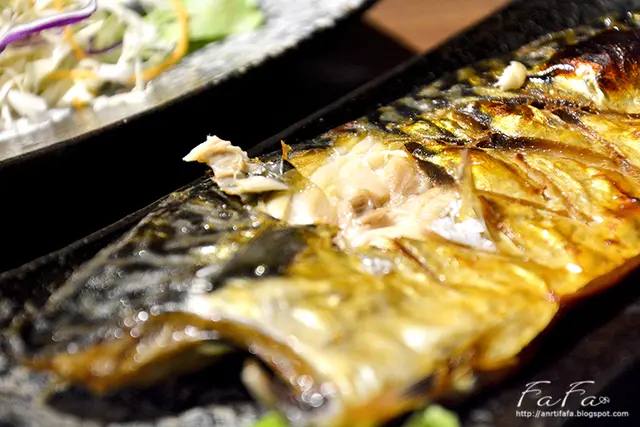 店員會建議鯖魚食用方式,一先吃原味 二沾蘿蔔泥與椒鹽 三擠上檸檬汁,