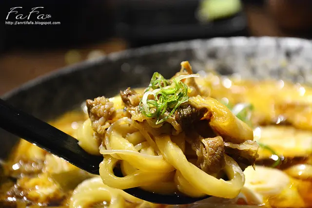 烏龍麵條很有彈性柔又Q還有蒟蒻麵,牛肉則是像牛丼那種燉至入味的長條薄片,纖維感較重,