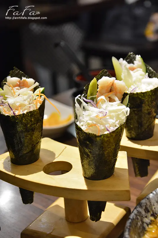 將花壽司入炸鍋這倒是我第一次看到,花壽司不再是單純左右夾攻,現在則是完整包覆住,