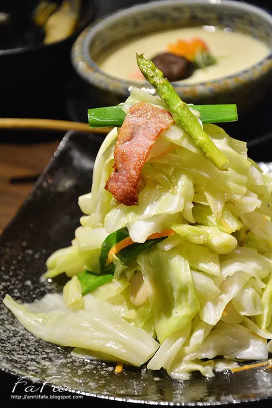 吃到這裡已經蠻飽的,一盤油量高麗菜出現,感覺好健康,