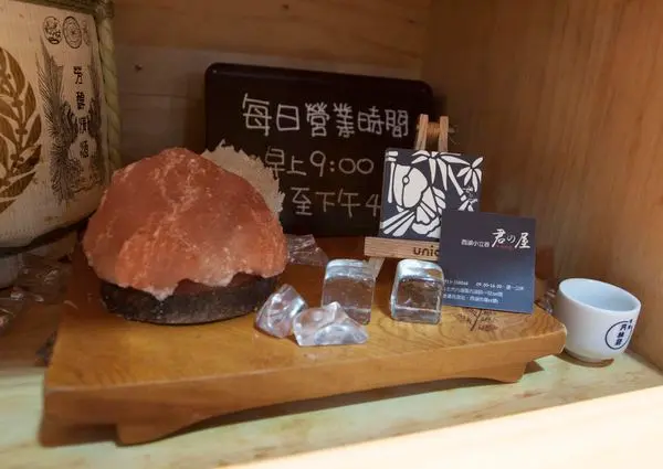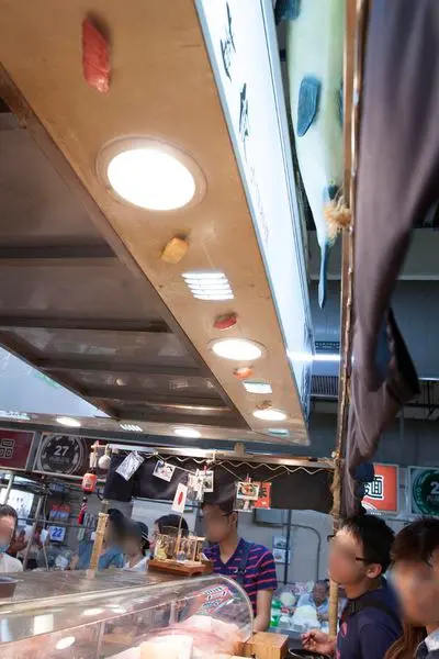 抬頭一看才發現頂端被店家調皮的黏上幾個假壽司做裝飾 -