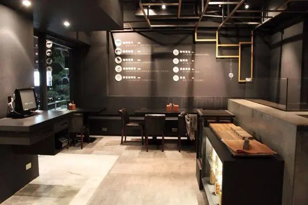 店面採用大面落地窗及窗戶設計納入自然光,整體的色系是以黑色為主體,呈現摩登、例落的餐館氛圍。