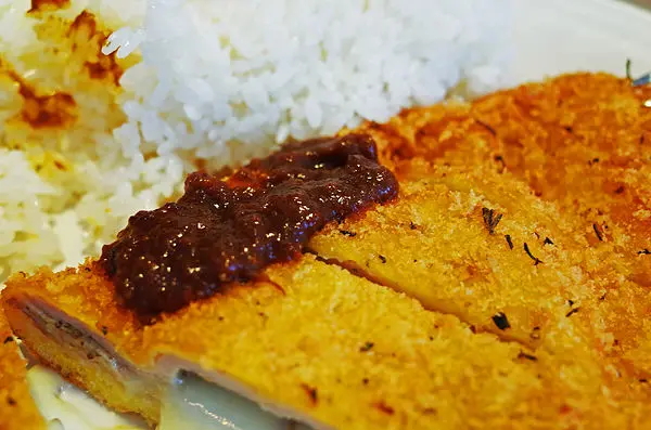 單吃豬排就很好吃了,旁邊還有用台梗九號米炊煮出來的白飯。