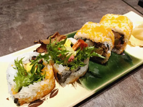裡頭有醃漬過的菌菇、玉子燒、明太子、蘆筍、鮮蝦層次清爽豐富