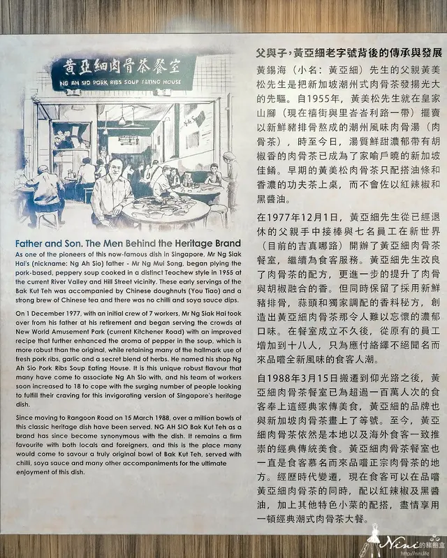 而黃亞細肉骨茶(NG AH SIO Bak Kut Teh)就是正宗的潮州式肉骨茶,在新加坡已有一甲子的歷史,絕對的老字號美食。