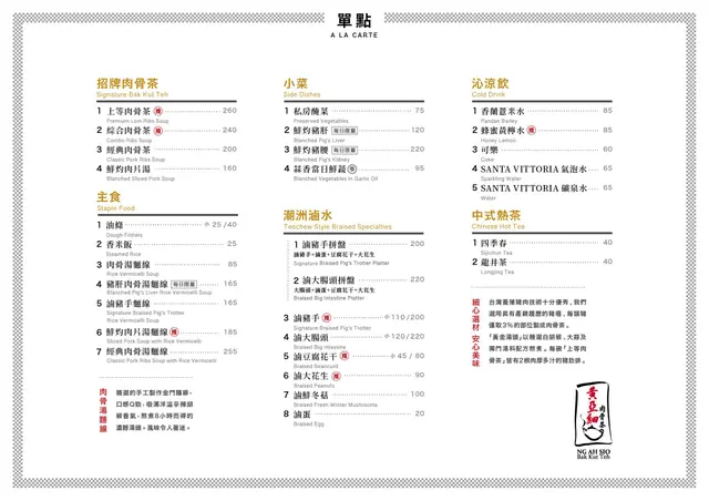 把菜單各分類都點來嚐嚐看,有肉骨茶、滷水、主食、小菜、飲料,剛剛好啊!