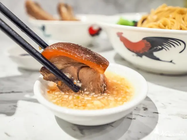 記得一定要蘸「蒜泥醋醬」,咀嚼時又香又蒜又酸,增添不少味覺的層次感,而且酸香清爽的醋醬,佐上豬腳後,完全解膩,要吃幾塊都沒問題!