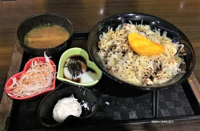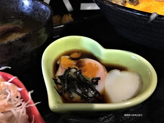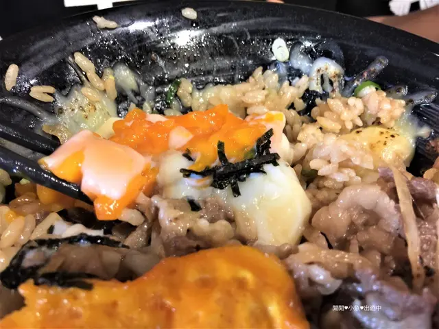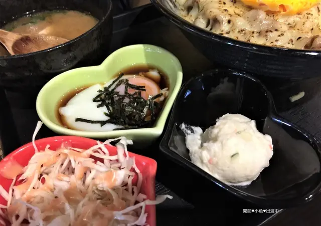 加了溫泉蛋的丼飯, 多了滑嫩骨溜的口感, 感覺美味度又更升級了呢!