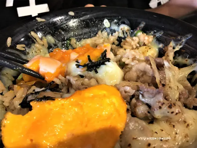而且油花分布相當均勻, 肉質軟嫩鮮甜, 搭配著大片香濃起司跟沾了醬汁的白飯一起吃, 即使沒有生蛋黃的加持也是一樣美味啊~