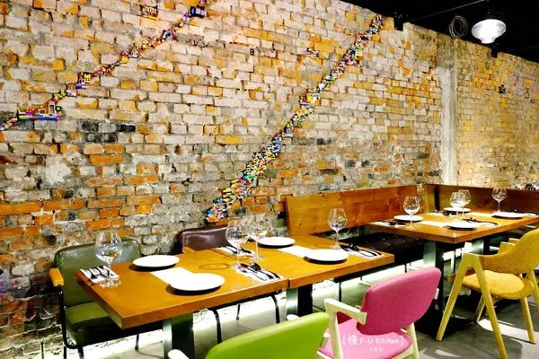 ▼棧F-U Kitchen走的是工業風裝潢設計,斑剝的紅磚瓦牆,裡頭還鑲嵌著樂高的驚喜呢!
