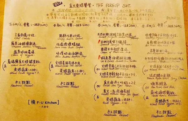 棧F-U Kitchen的餐點除了單點外,也有搭配好的套餐,價位從每人$600大洋到$1800大洋都有,