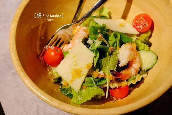 ▼單人套餐的沙拉,其實就是雙人套餐沙拉的縮小版,但是少了天使蝦。
