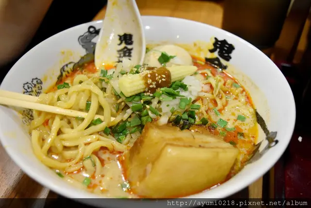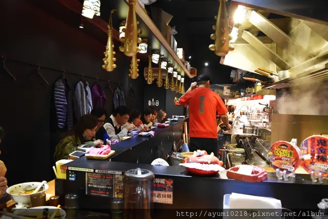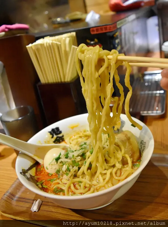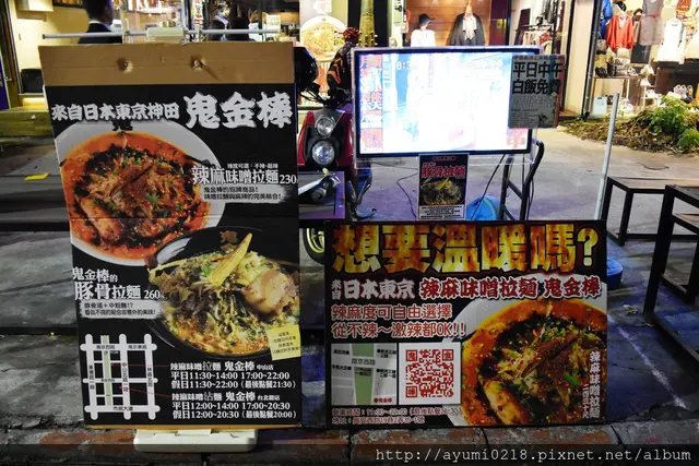 目前已經經營到3間分店.秋冬的涼意讓熱呼呼的拉麵備受歡迎 門口的鬼金棒是招牌
