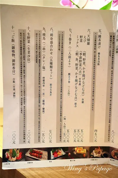 餐點以鰻料理為主,除了鰻魚飯、天婦羅飯外,