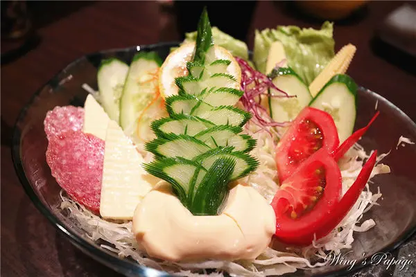 中間擺放師傅精雕松樹造型的小黃瓜,兼具視覺與味覺享受,