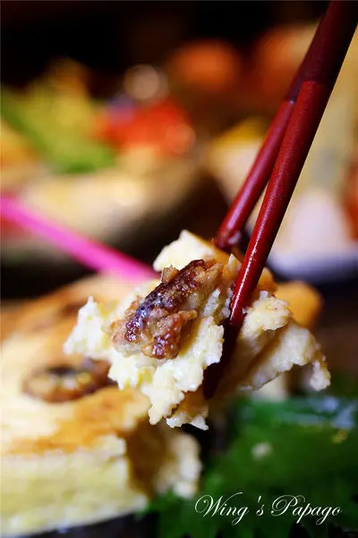 再淋上魚庒百年醬汁提味,一同入口充滿雞蛋與鰻魚相映相成的香氣,