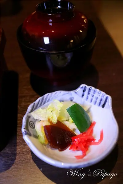 今日漬物有小黃瓜、白菜、醬瓜及紅薑絲。
